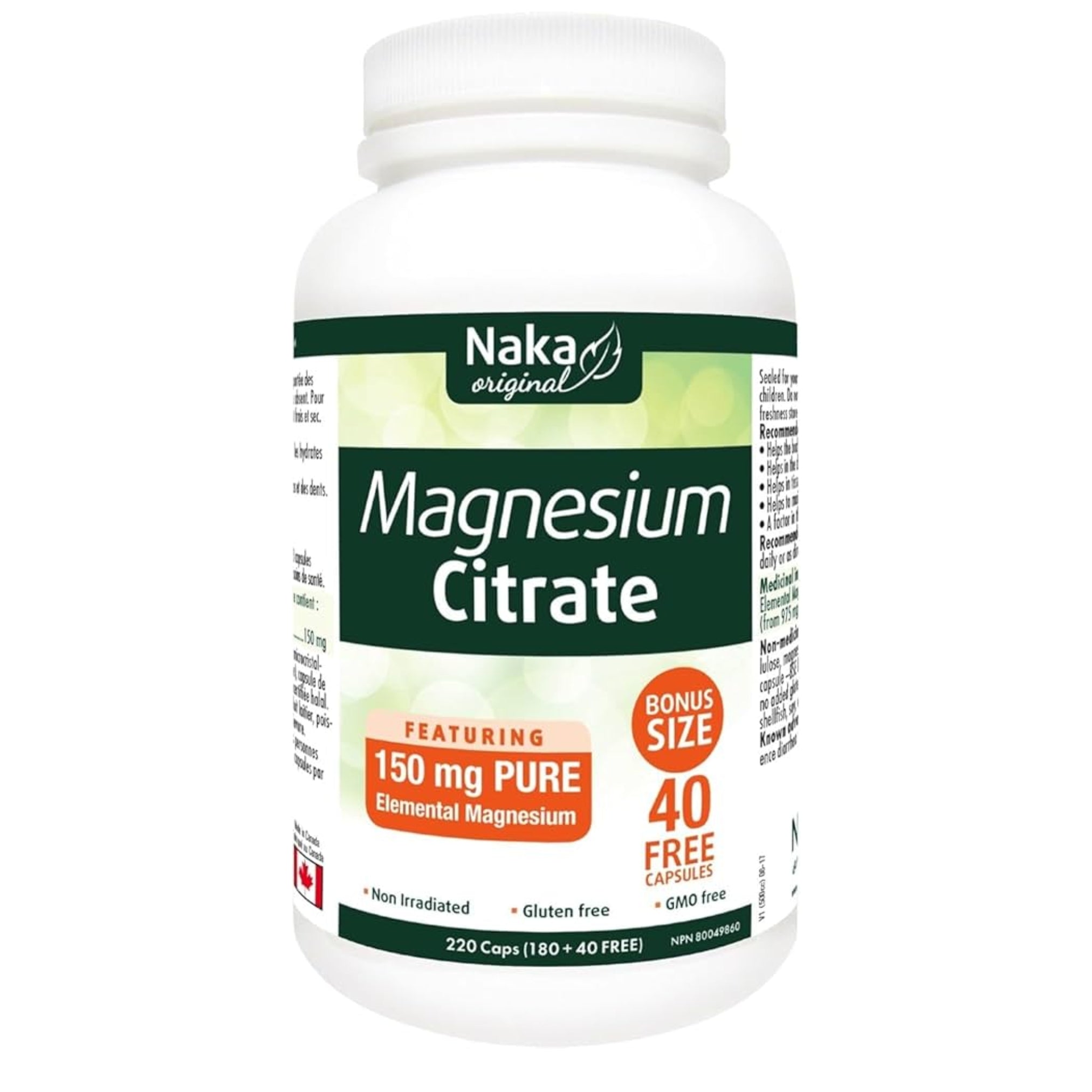 Naka Magnesium Citrate is a high-quality, highly bioavailable magnesium supplement. Magnesium Citrate is magnesium combined with citric acid, it is needed to metabolize carbohydrates, proteins, and fats, and for healthy bones and teeth, proper muscle function, and overall good health. Magnesium Citrate from Naka lowers blood pressure, supports the heart, nervous system and cellular energy. Magnesium Citrate has also shown support for muscle cramps, restless leg syndrome, reducing migraines and symptoms of PMS.