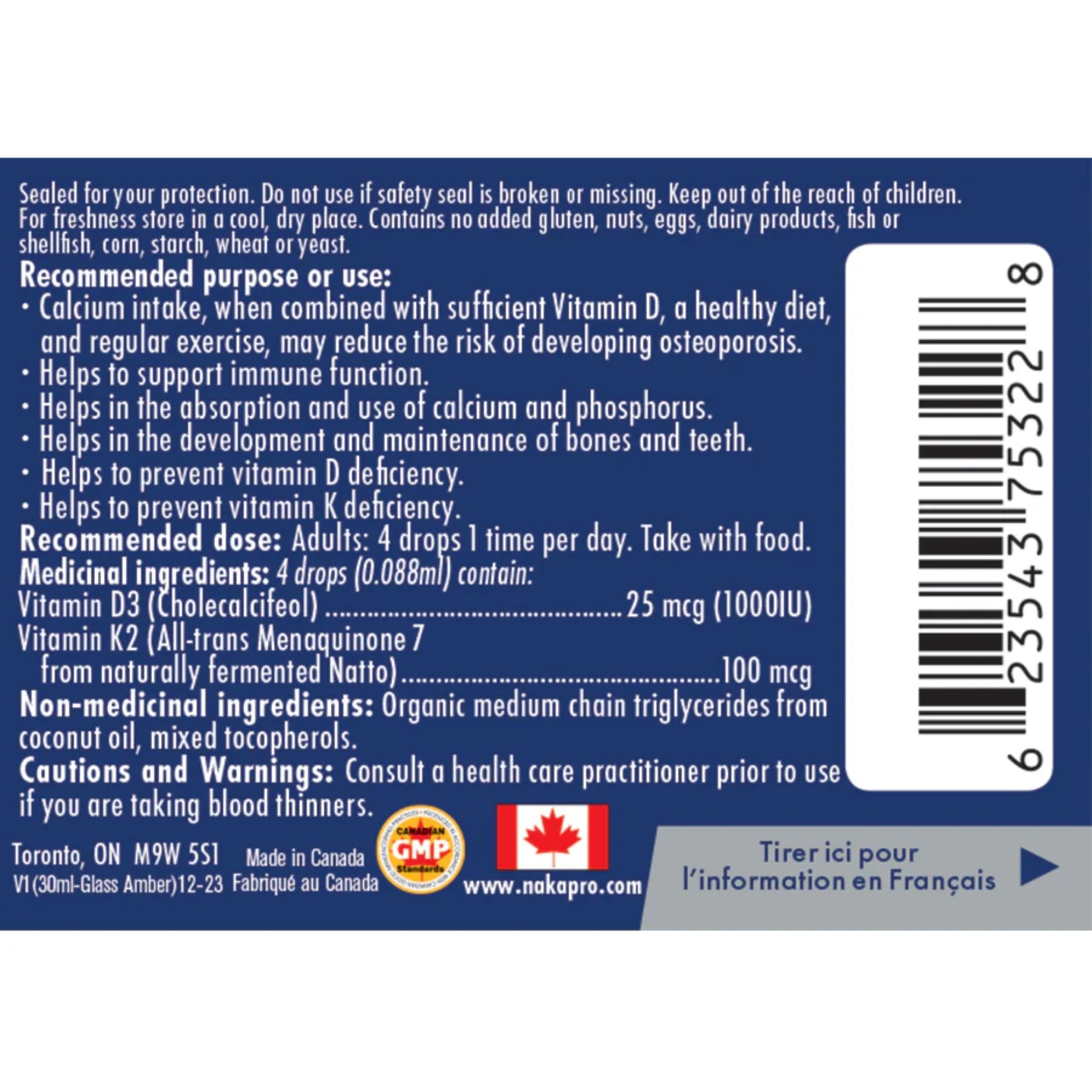 - 1000 IU D3 - 100 mcg K2 - 1364 DROPS in MCT oil